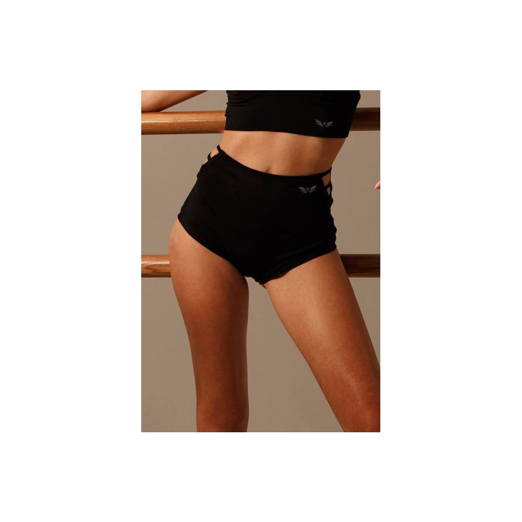 Šortky s vyšším pasem a průstřihy na bocích od značky DressFit z elastického materiálu, ve kterém se můžete pohodlně hýbat. Mají jedinečný vzhled, jsou vyrobeny z certifikovaného materiálu, který se vyznačuje dobrou odolností vůči opotřebení. Materiál odvádí vlhkost a je rychleschnoucí. Skvěle odvádí pot.
