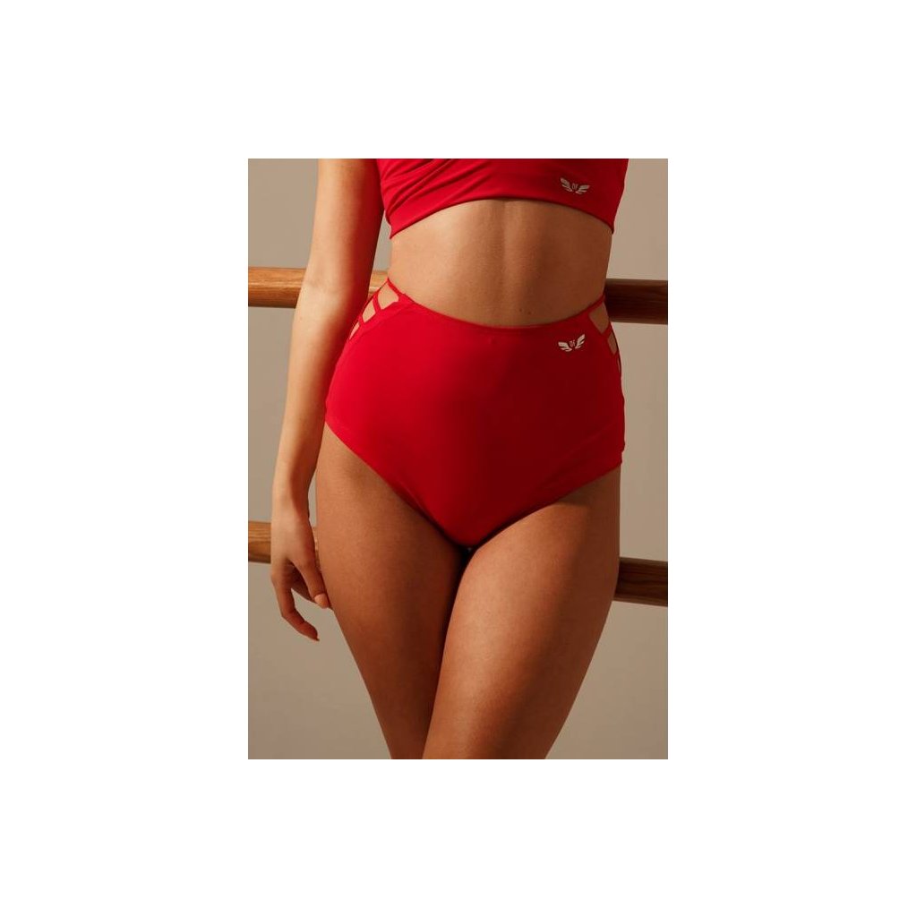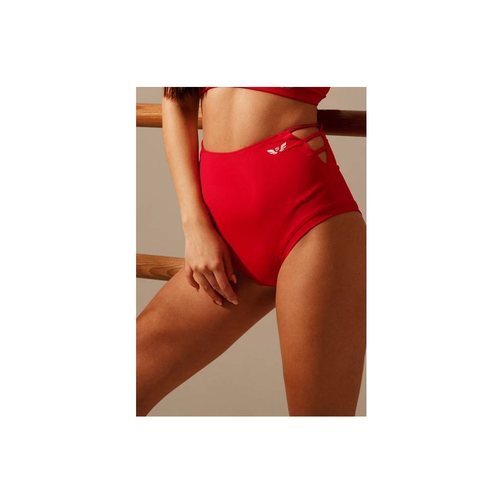 Šortky s vyšším pasem a průstřihy na bocích ve svůdné červené od značky DressFit z elastického materiálu, ve kterém se můžete pohodlně hýbat.