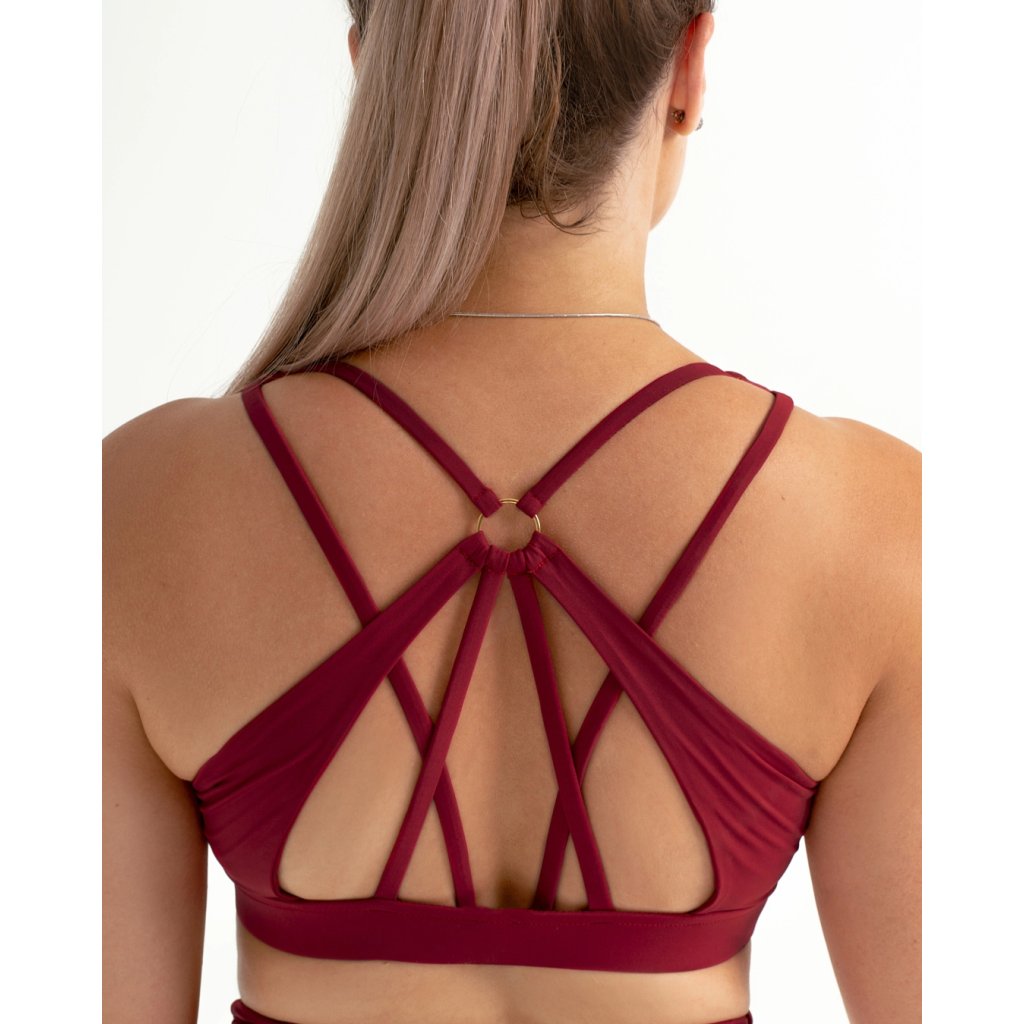 Spojení výjimečného odstínu červeného vína, zlatého kroužku a elegantních pásků na zádech dělá z topu Back Lines jeden z nejženštějších, ale zároveň i nejvíce sportovních střihů značky Beng!